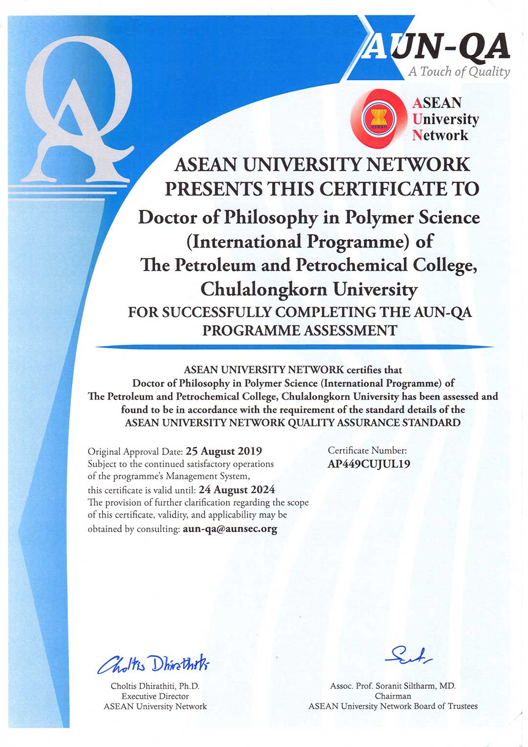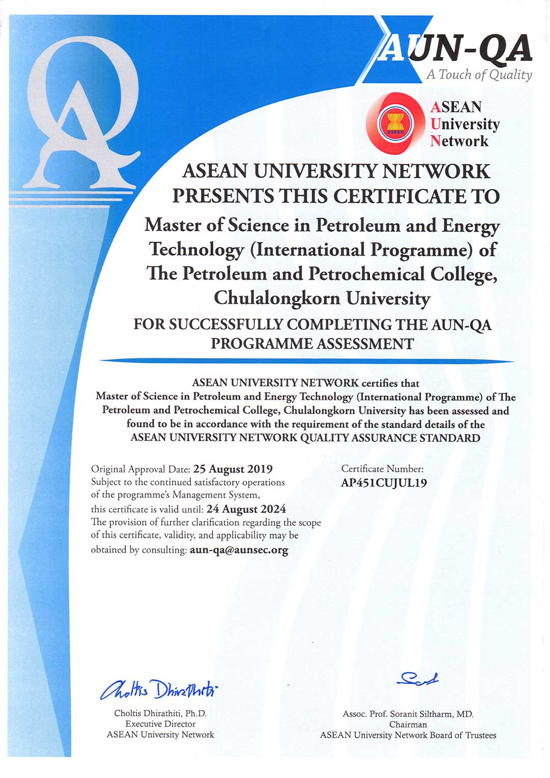 AUN-QA Certificate to